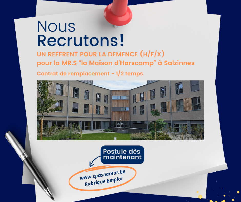 Le CPAS de Namur recherche un référent démence (H/F/X) pour la MR.S "La Maison d'Harscamp"