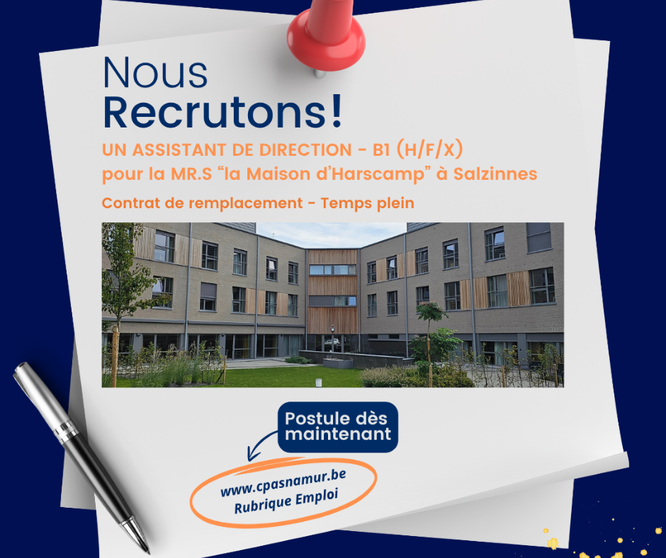 Le CPAS de Namur recherche un asssitant de direction (H/F/X) au sein de la MRS d’Harscamp